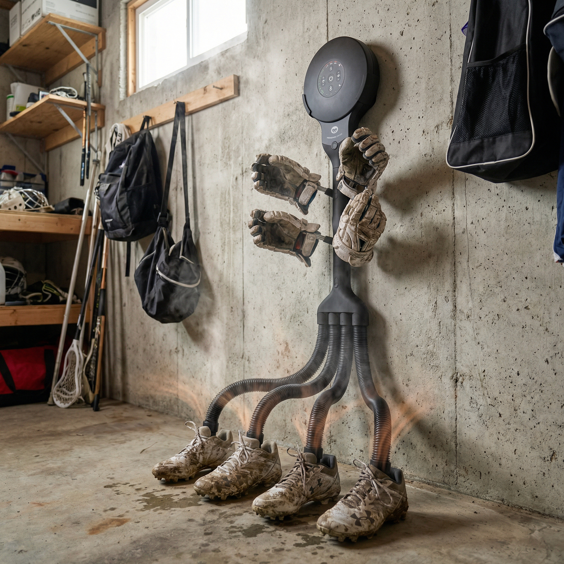 The NEW all-in-one dryer for shoes, boots, and gloves. Dries kids' shoes and mittens in record time while keeping the hallway clean and tidy.